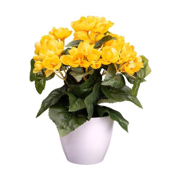 Flor artificial begonia SYLINA, maceta decorativa blanca, color amarillo, 30 cm