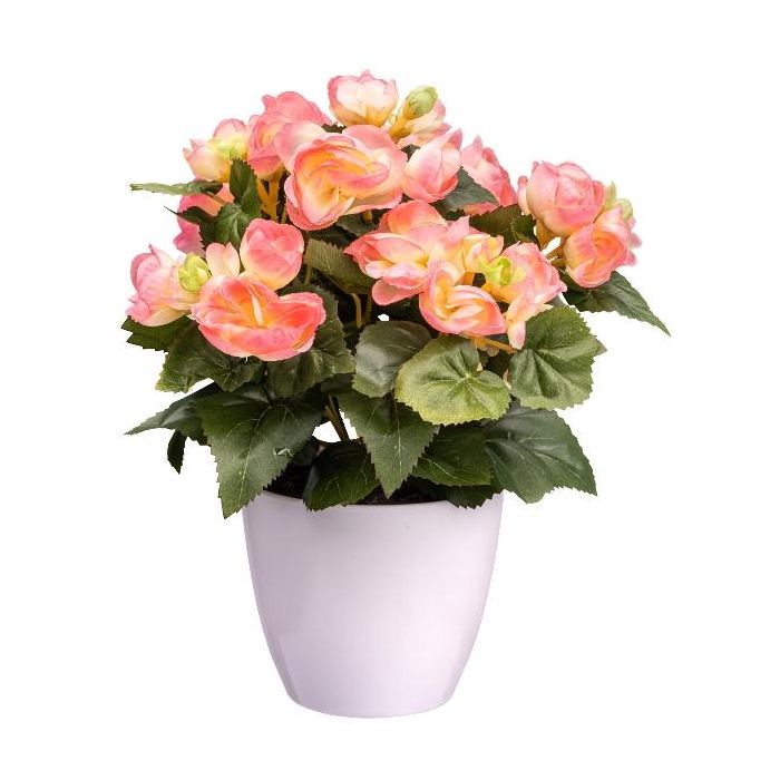 Flor artificial begonia SYLINA, maceta decorativa blanca, color rosa, 30 cm