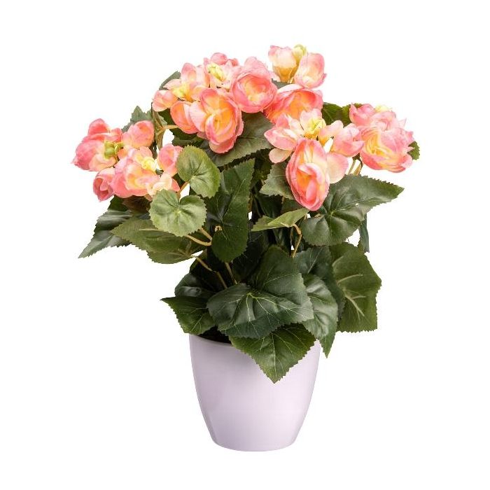 Flor artificial Begonia SYLINA, maceta decorativa blanca, color rosa, 35 cm