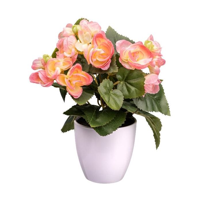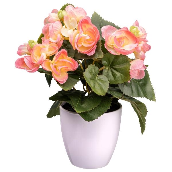 Flor artificial begonia SYLINA, maceta decorativa blanca, rosa, 25 cm