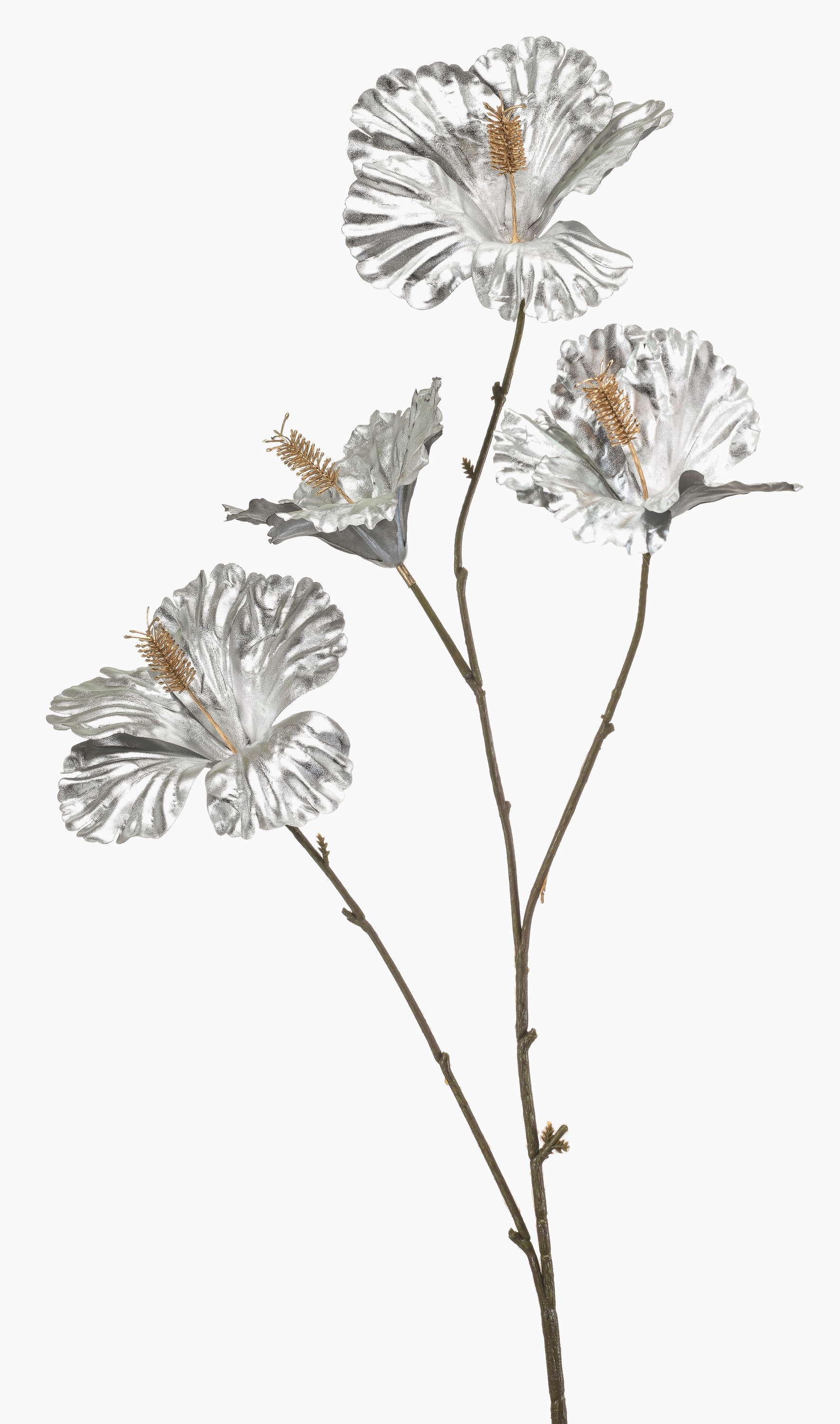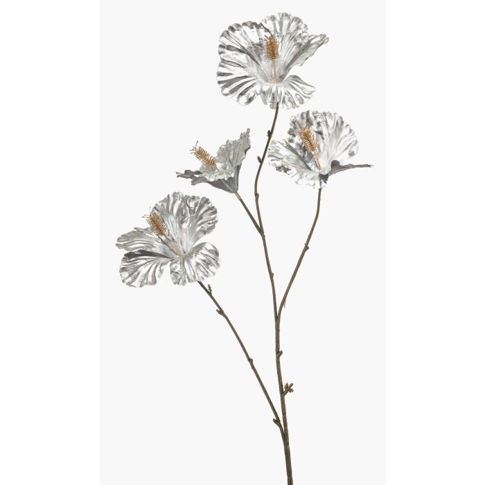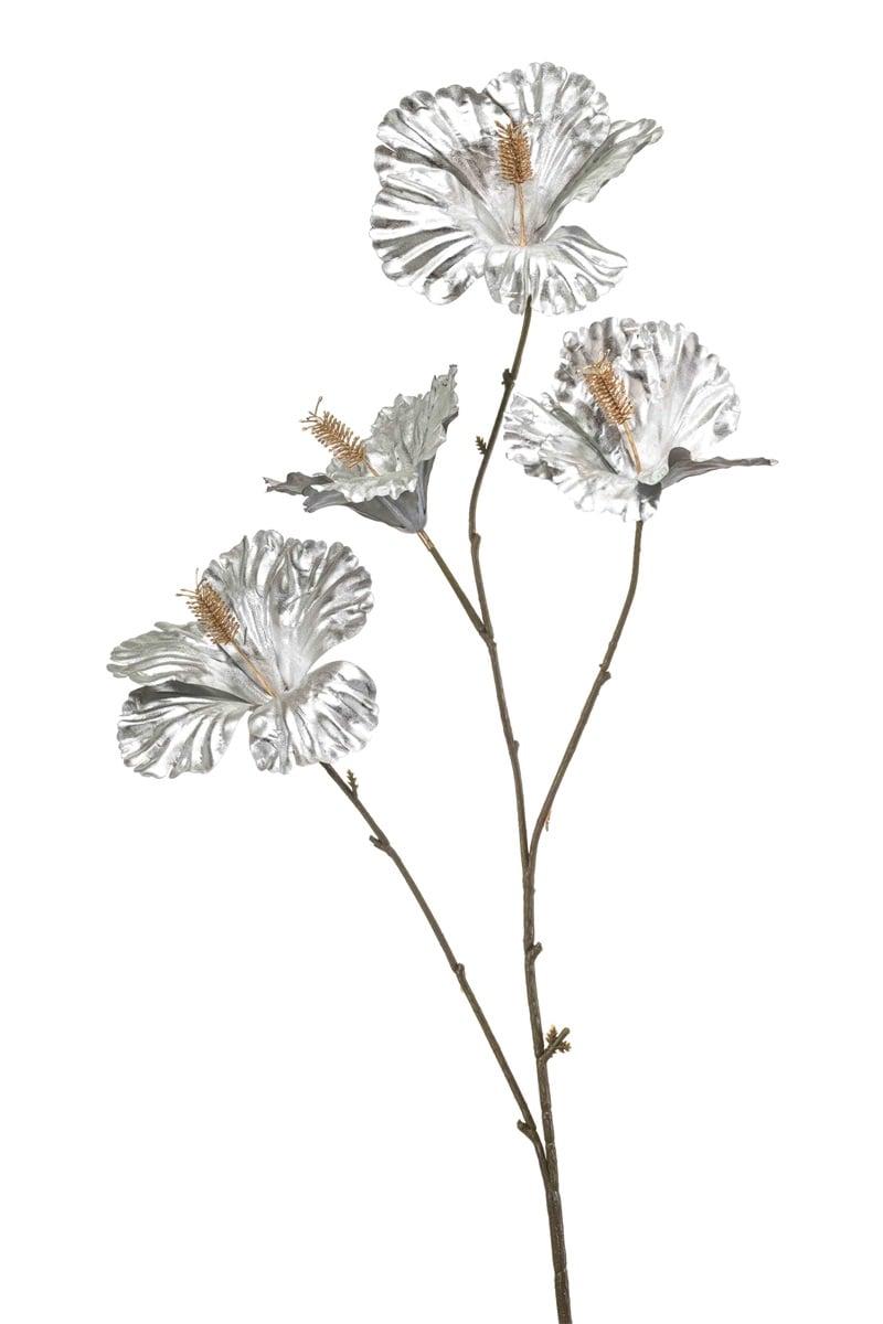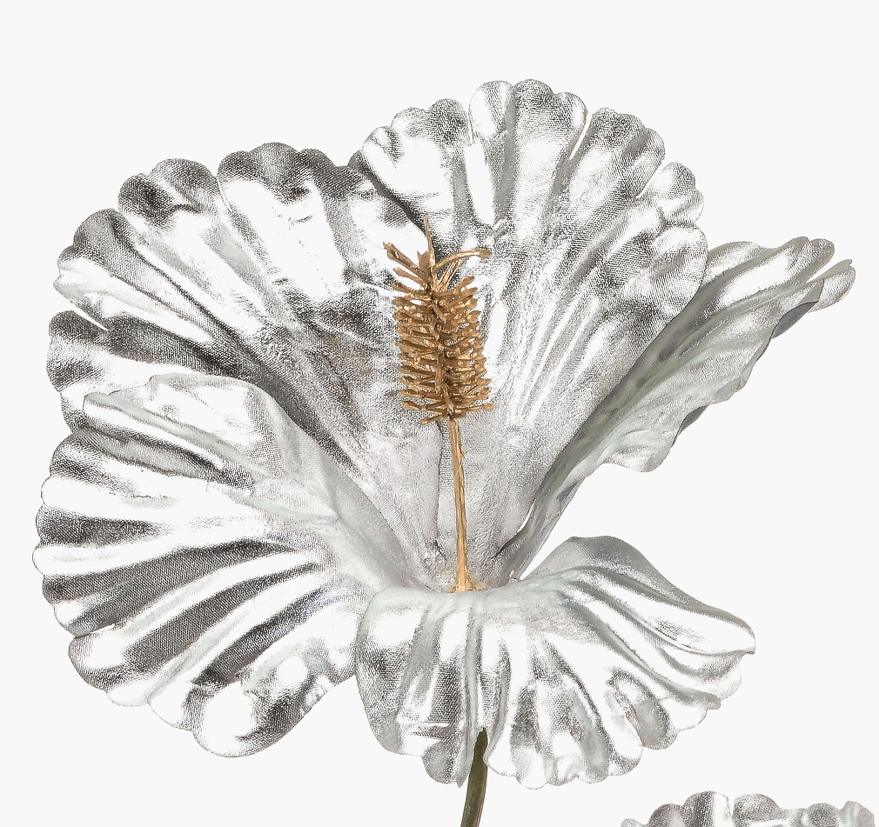 Flor artificial de hibisco KEALANI, metalizado plateado y dorado, 80 cm