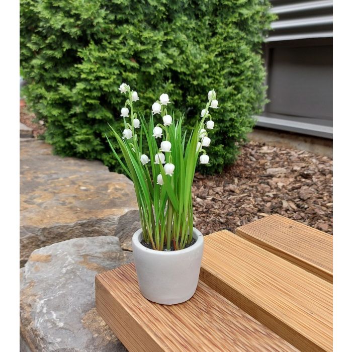Flor artificial de lirio de los valles NOMTHA en maceta de cemento, blanco, 20 cm