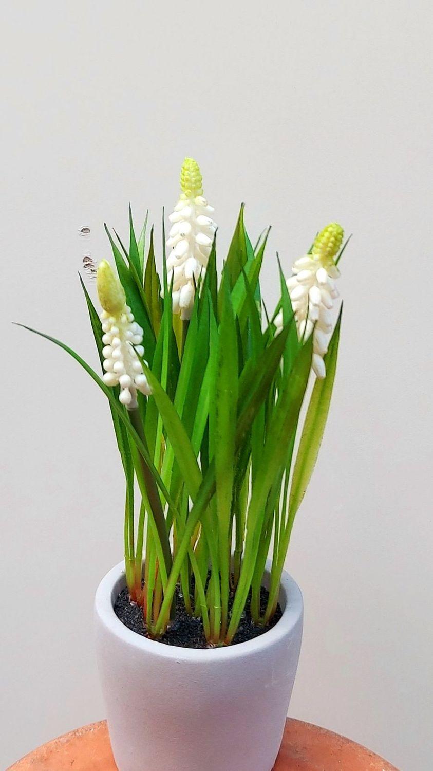 Flor artificial de muscari NARMADA en maceta de cemento, blanca, 20 cm