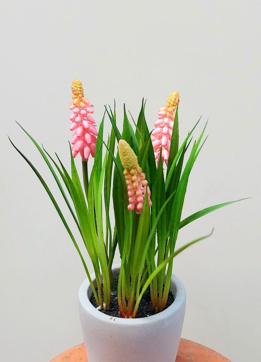 Flor artificial de muscari NARMADA en maceta de cemento, rosa, 20 cm