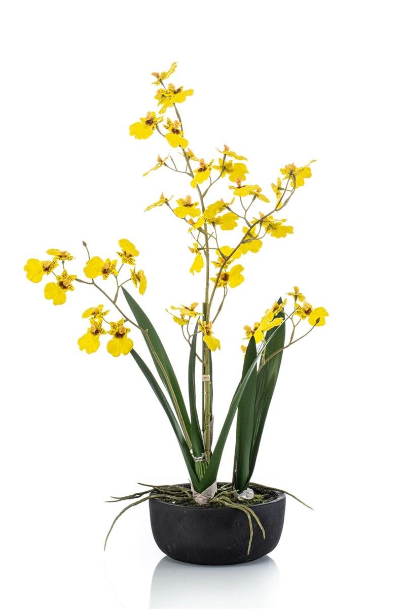 Flor artificial de orquídea Oncidium DEISHA en bandeja decorativa, raíces, amarilla, 60 cm