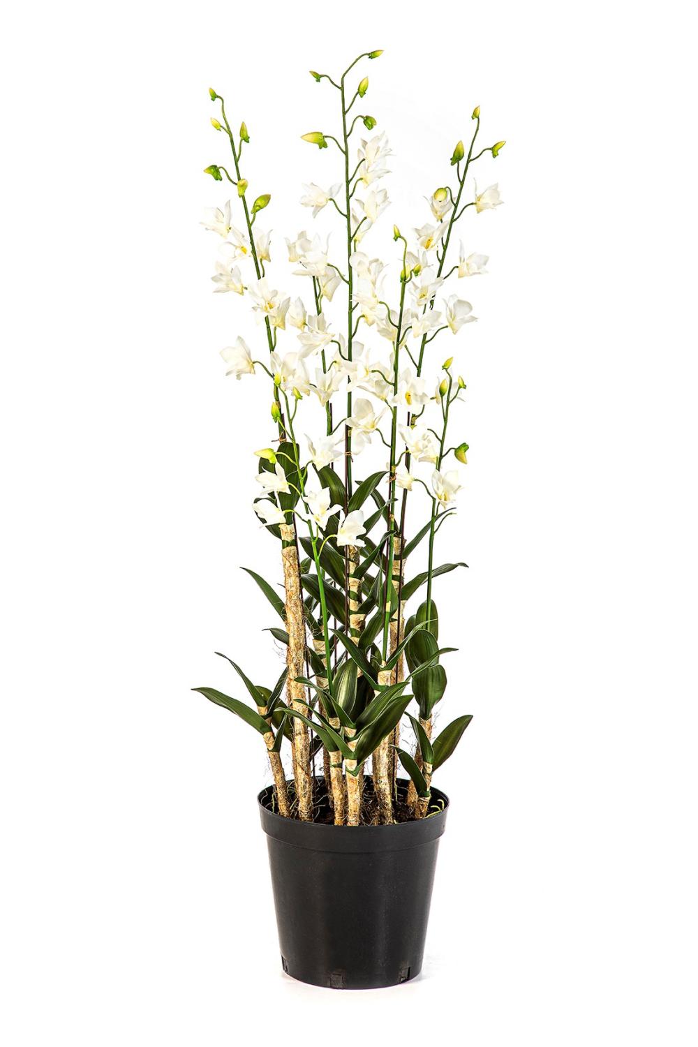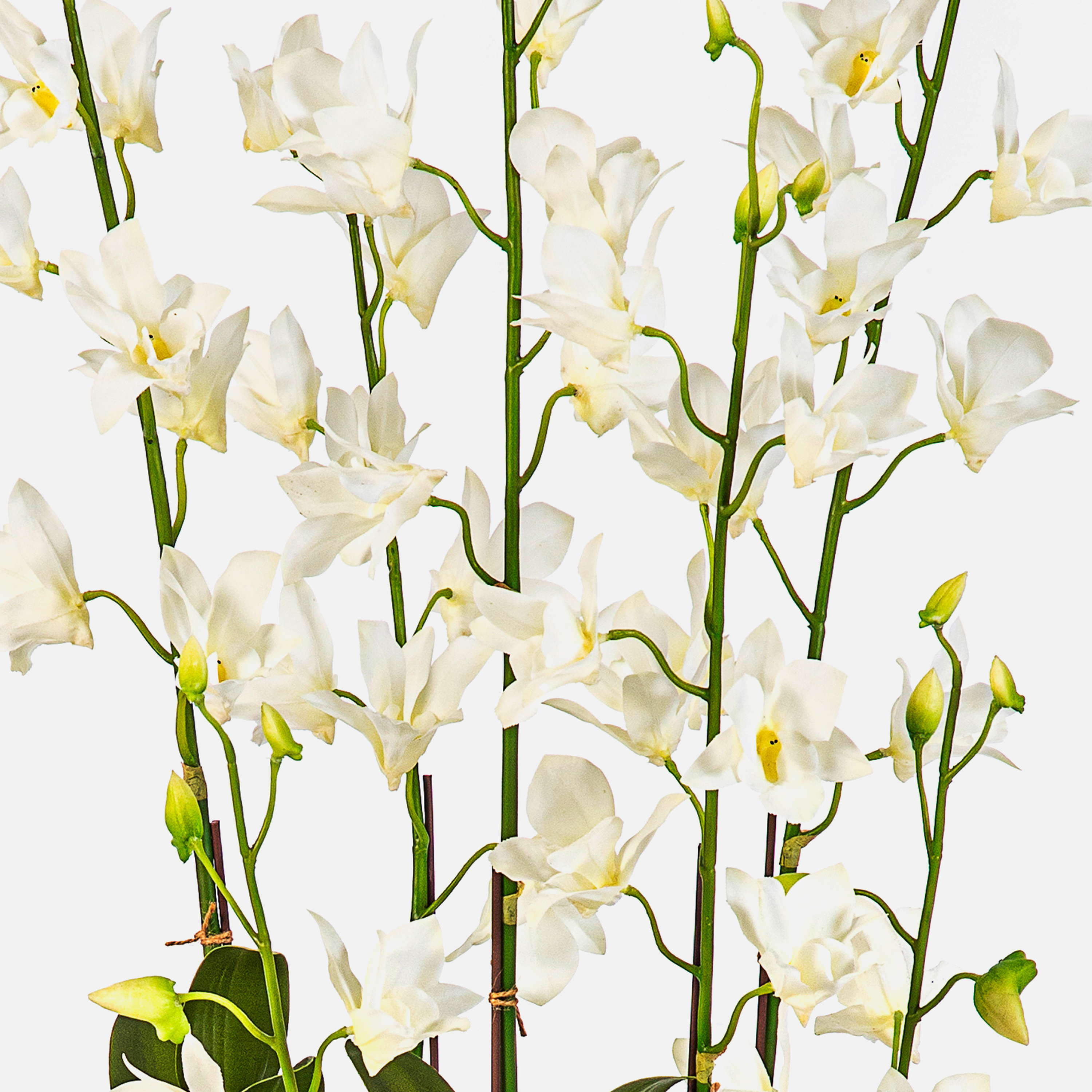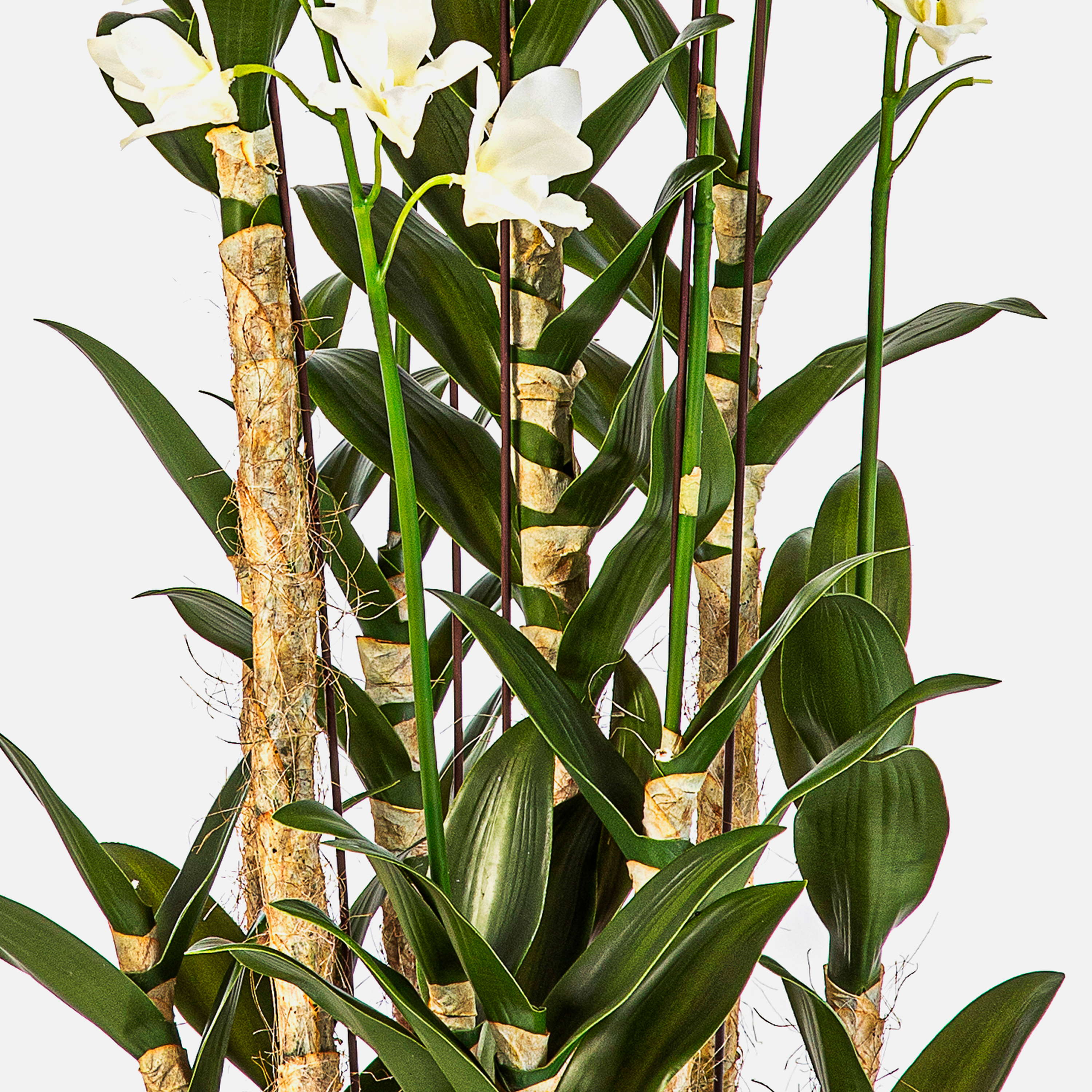 Flor artificial Dendrobium LOFINA en maceta decorativa, blanca, 130 cm
