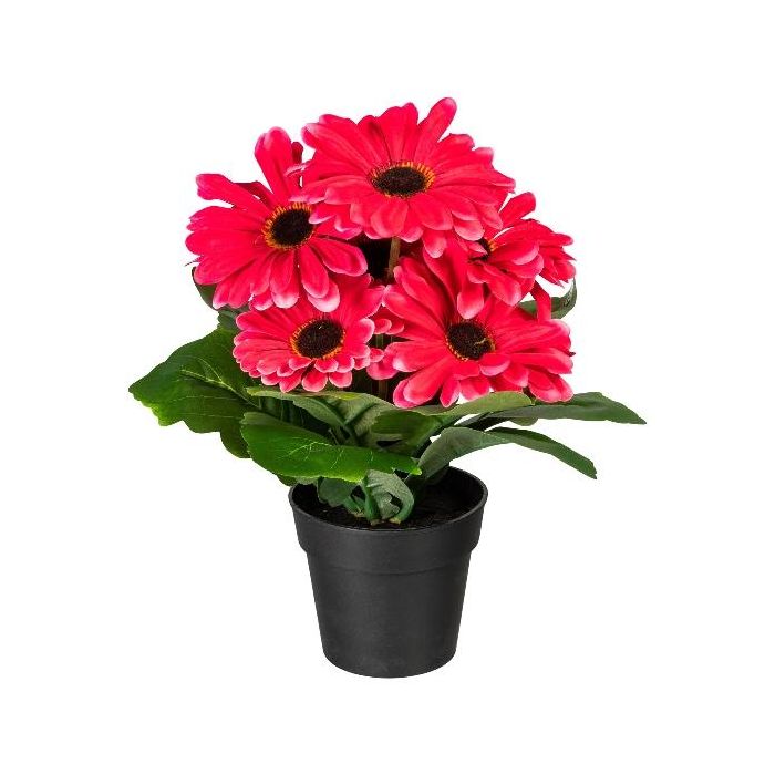 Flor artificial gerbera KROLVEN en maceta decorativa negra, fucsia, 27 cm