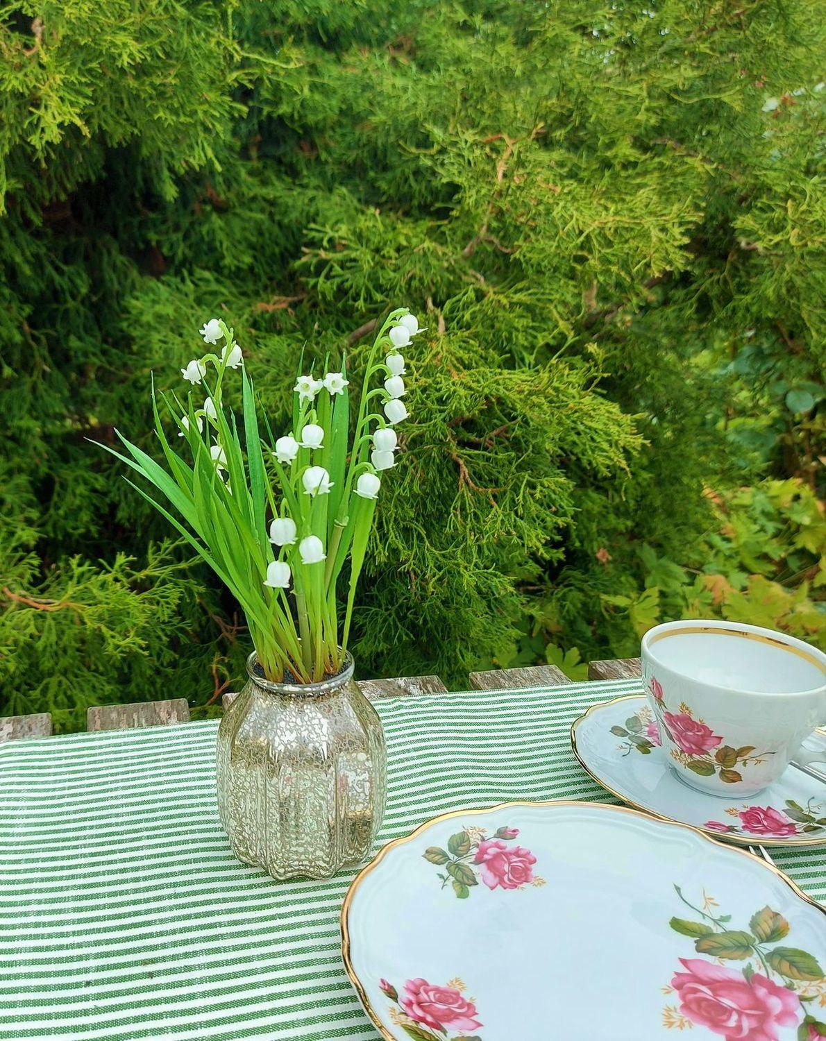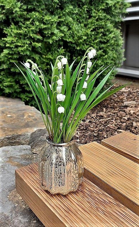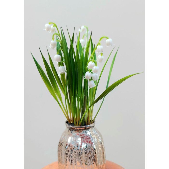 Flor artificial muguete NIKISHA en jarrón de cristal, blanco, 20 cm