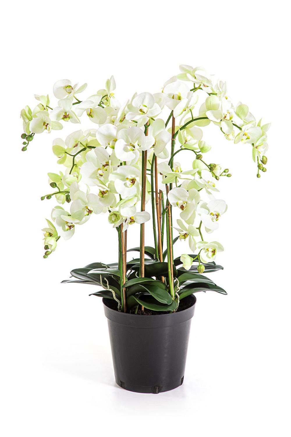 Flor artificial Phalaenopsis FINEA en maceta decorativa, crema, 85 cm
