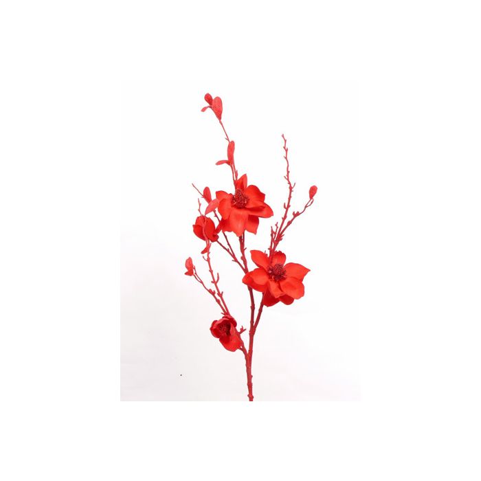 Flor de magnolia artificial SANDY, brillo, rojo, 115cm