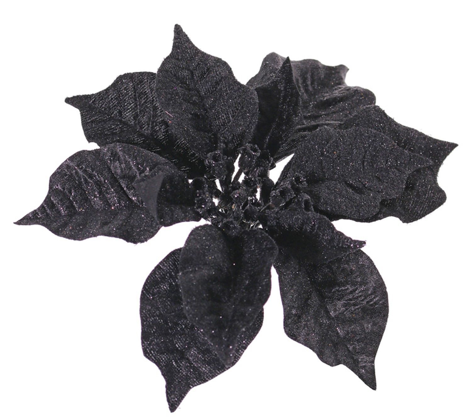 Flor de Navidad de terciopelo SPICA en clip, brillo, negro, Ø18cm