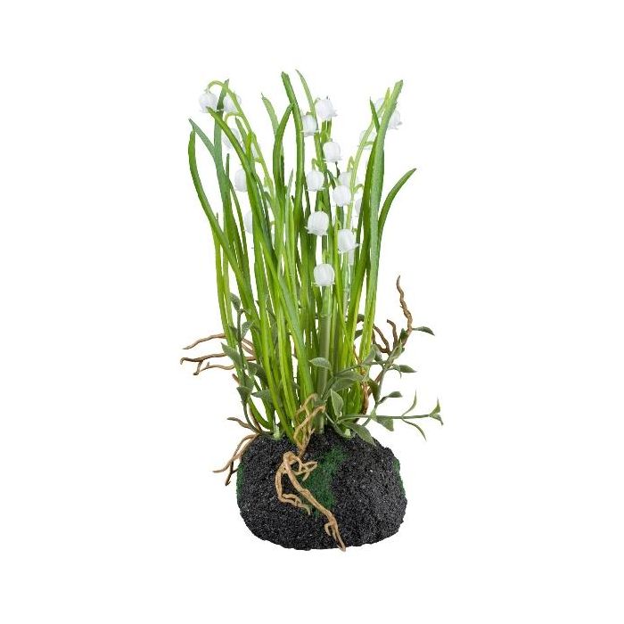 Flor de plástico Lirio de los valles PERFAS en globo terráqueo, raíces, blanco, 22 cm