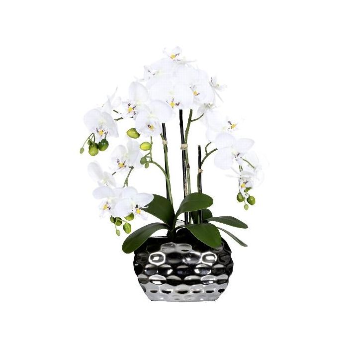 Flor de plástico Phalaenopsis Orquídea SINKA en maceta decorativa plateada, blanca, 55 cm