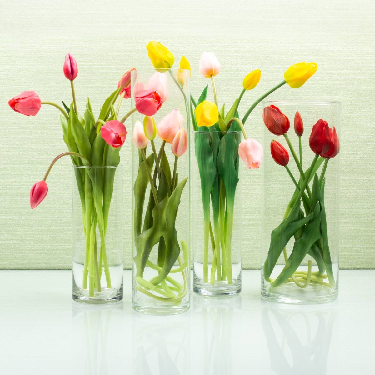 ¡Rojo, rosa y amarillo! Los tulipanes son una decoración clásica y de aspecto luminoso en primavera. Son tan únicos en su color y forma que funcionan solos y no necesitan ningún accesorio. Nuestros jarrones cilíndricos, que están disponibles en una increíble cantidad de diseños, son perfectos para este estilo porque resaltan particularmente bien los tulipanes ¡Compra el look!