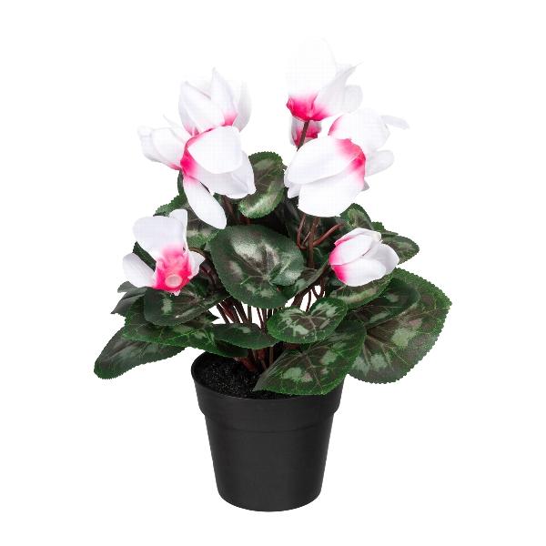Flor decorativa ciclamen FOLKREN en maceta decorativa, blanco-rosa, 30 cm