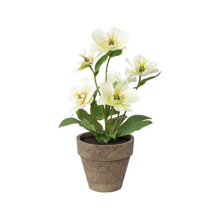 Flor decorativa de rosa de Navidad ILLUME, maceta decorativa, blanco-verde, 30 cm