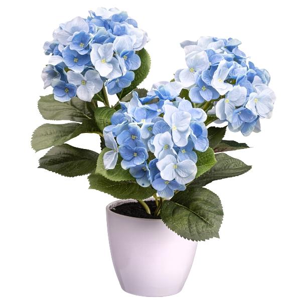 Flor decorativa hortensia SLORFIN en maceta decorativa blanca, azul, 30 cm