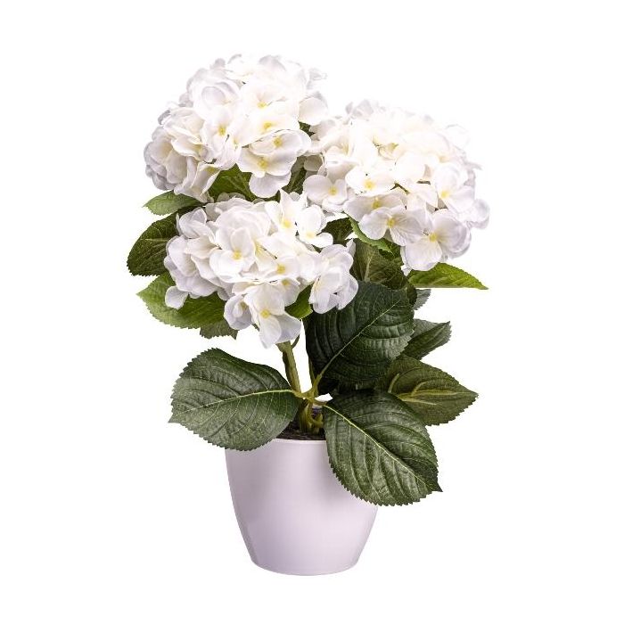 Flor decorativa Hortensia SLORFIN en maceta decorativa blanca, color blanco, 30 cm