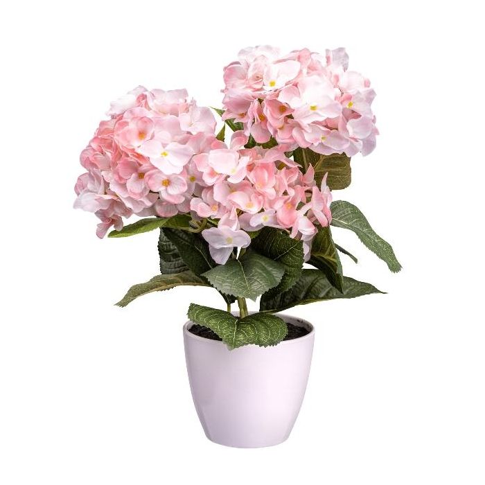 Flor decorativa Hortensia SLORFIN en maceta decorativa blanca, color rosa, 30 cm