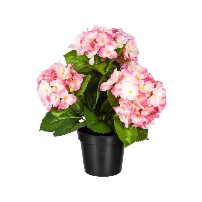 Flor decorativa Hortensia SLORFIN en maceta decorativa negra, rosa, 30 cm