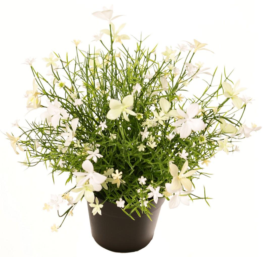 Flor decorativa impatiens GISINDA en maceta decorativa, blanco-verde, 25 cm
