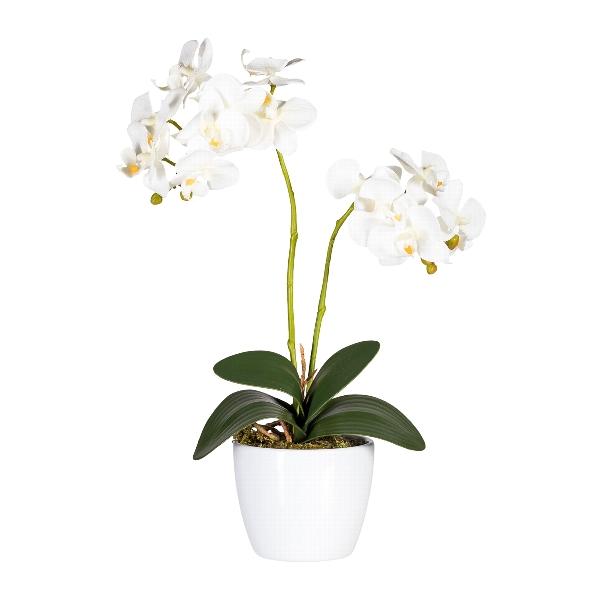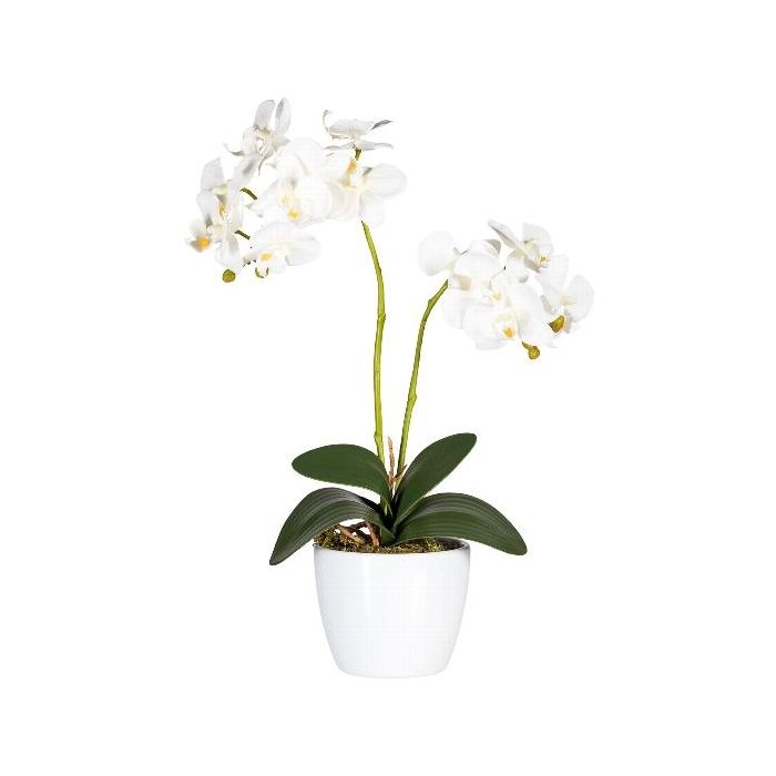 Flor decorativa Phalaenopsis FRUXO, maceta de cerámica, raíces, blanca, 50 cm