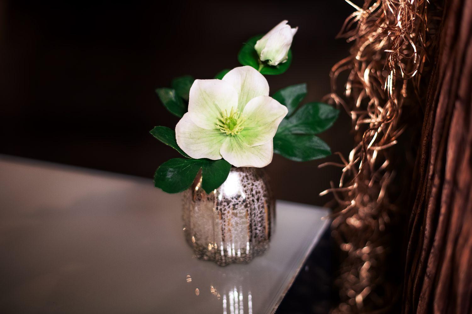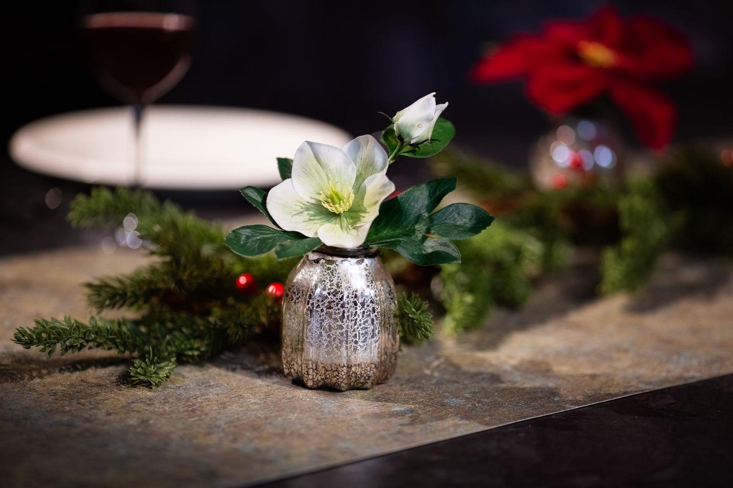 Flor decorativa rosa de Navidad WINFRIEDA en jarrón de cristal, verde crema, 20 cm