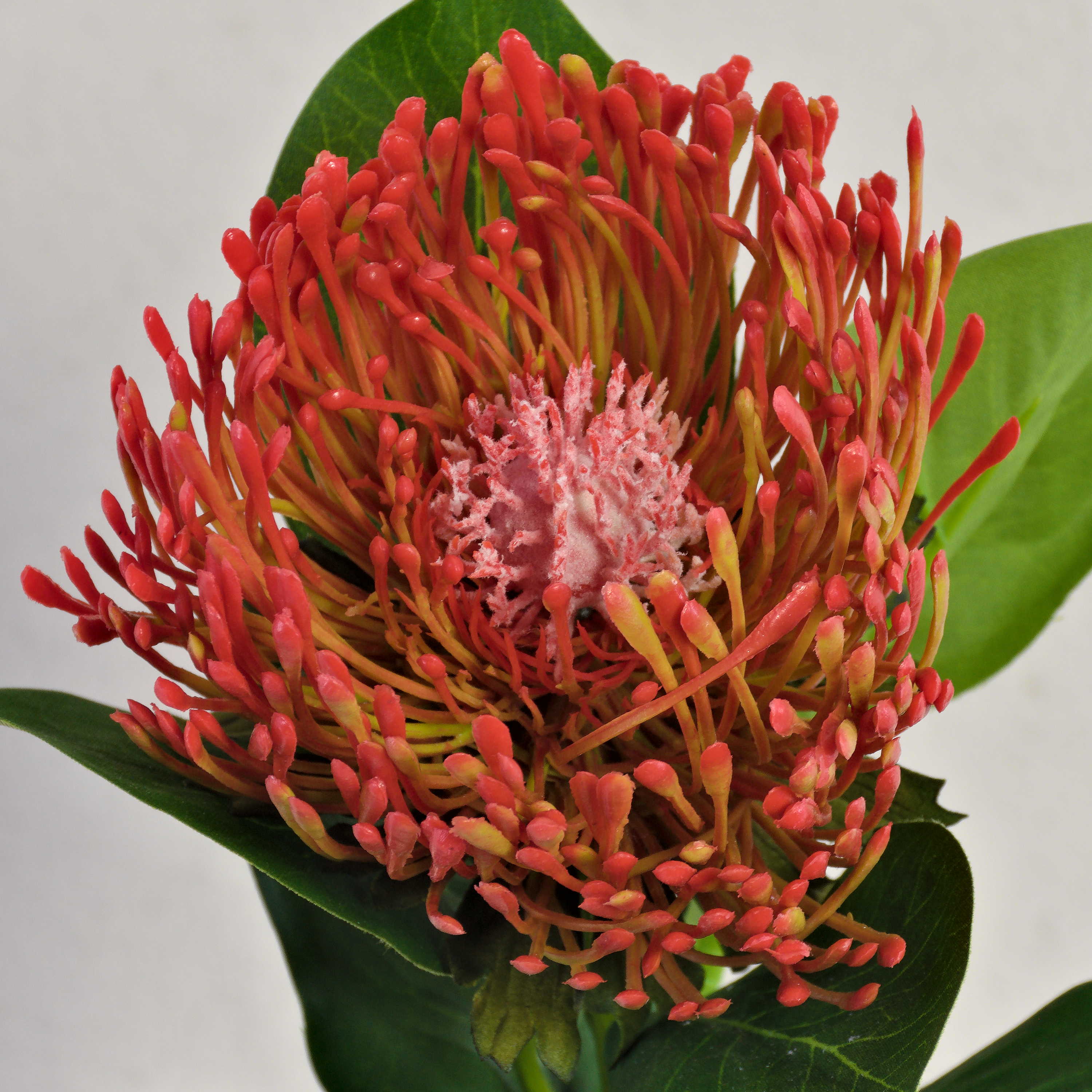 Flor falsa protea TANJA, rojo-naranja, 65cm