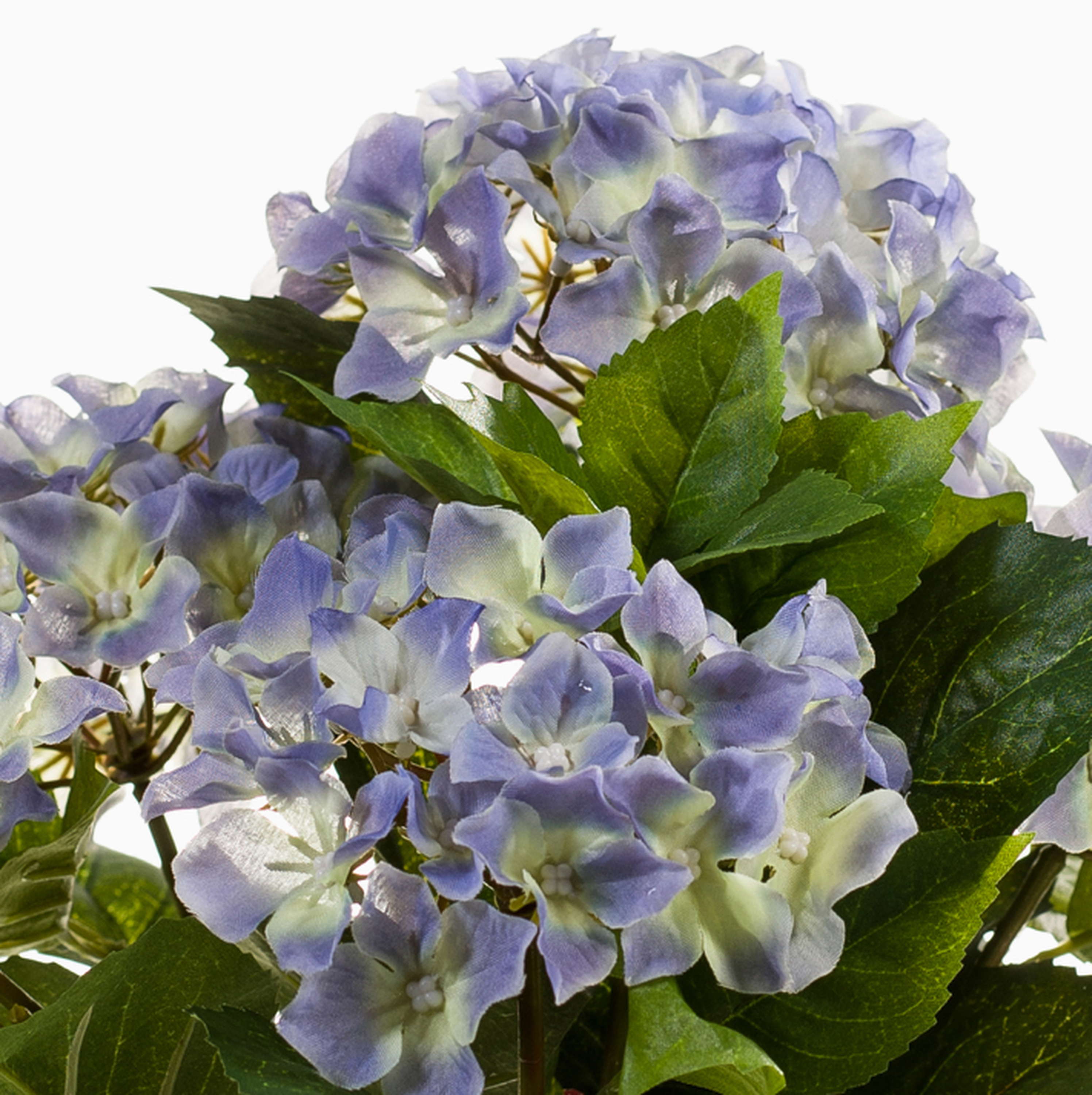 Flor textil de hortensia LAIDA en maceta de cerámica, azul claro, 35cm