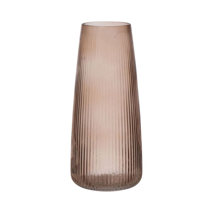 Florero cónico de cristal PELAYO con ranuras, rosa pálido-transparente, 21cm, Ø10cm