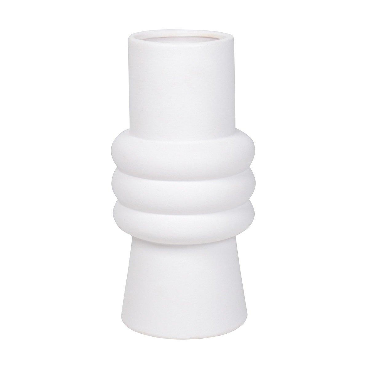 Florero de cerámica moderno BERNICIA con ranuras cruzadas en el centro, blanco, 19,5cm, Ø9,5cm