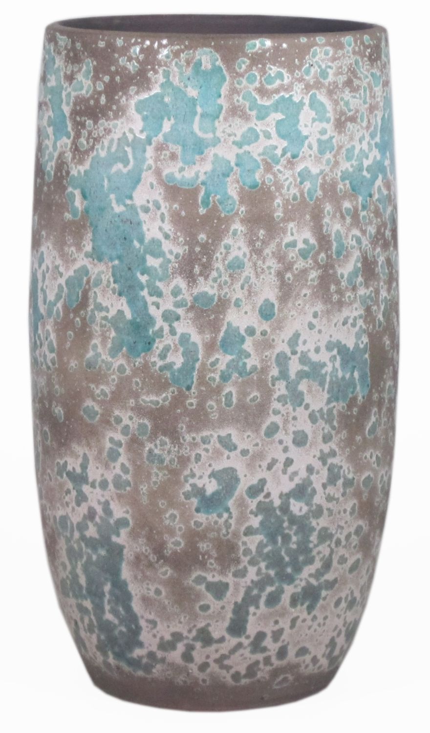 Florero de cerámica TSCHIL, rústico, degradado de color, marrón-verde, 45cm, Ø20cm