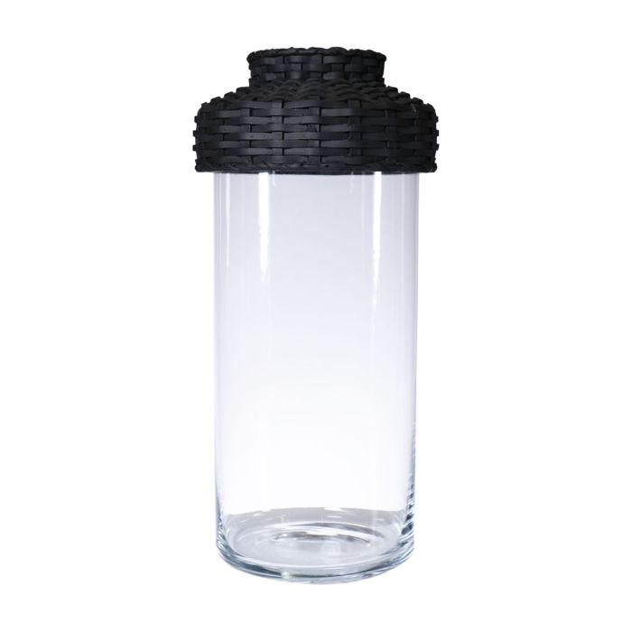 Florero de cristal decó JINTANA con tapadera o base de ratán, transparente-negro, 45cm, Ø18,5cm