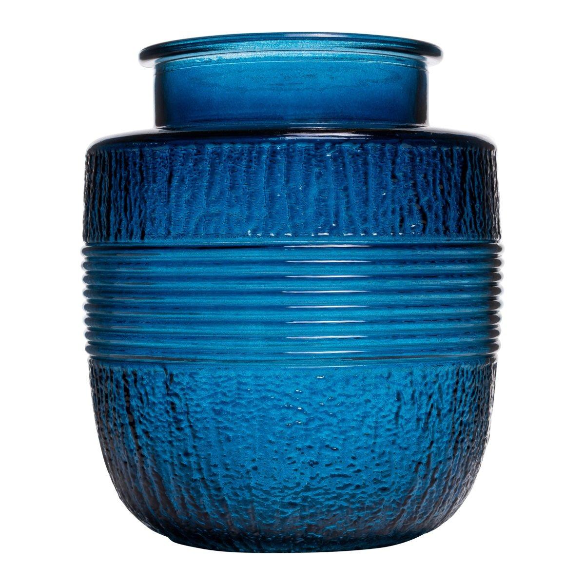 Florero de cristal decorativo MARISELA con borde decorativo, azul-transparente, 18cm, Ø15,5cm