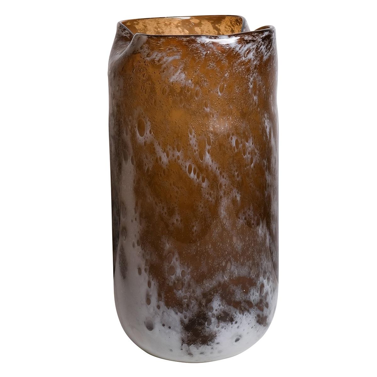 Florero de cristal PEPA, apertura doblada, jaspeado, naranja-marrón-blanco-transparente, 41,5cm, Ø20cm