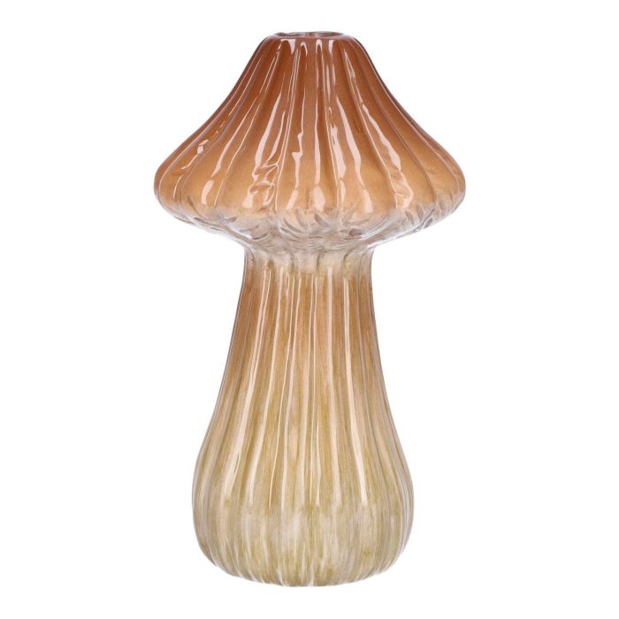 Florero RATBURGA, forma de seta, cerámica, ranuras, marrón-beige, 16cm, Ø9cm