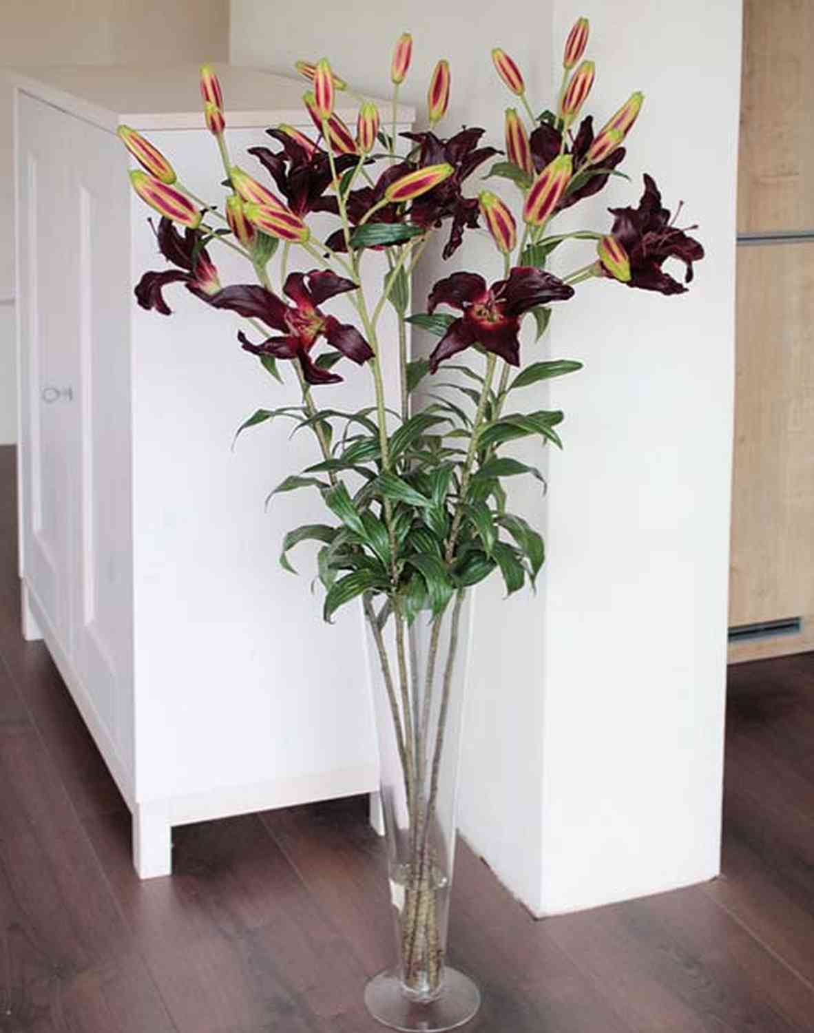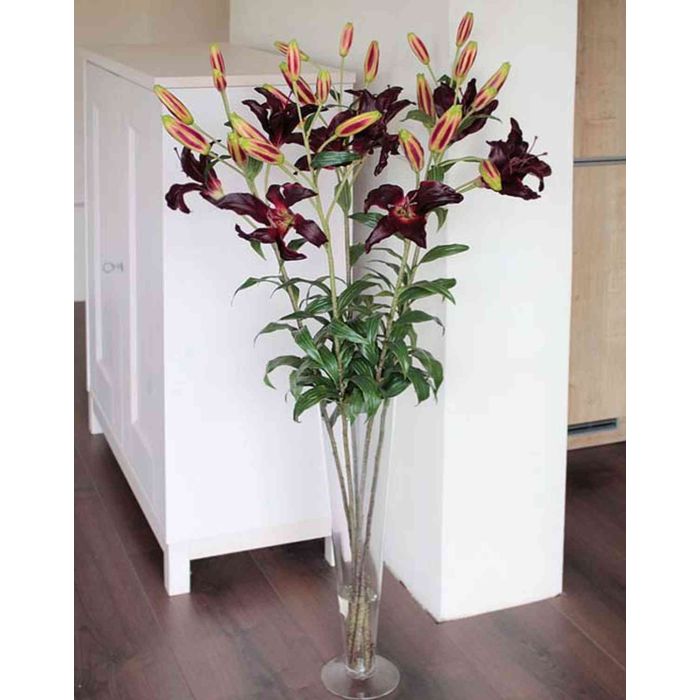 Flores de lirio tigre artificiales MERANDA en jarrón, rojo burdeos, 130cm