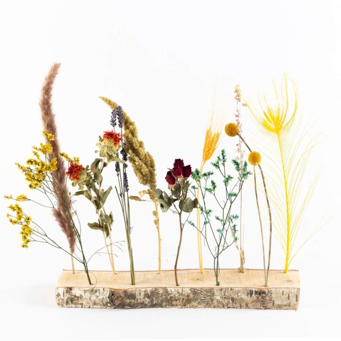 Flores secas en tabla de madera MICHAEL, amarillo-morado, 40x7x35cm