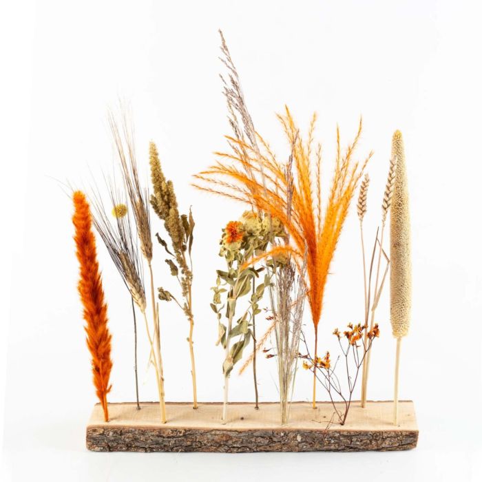 Flores secas en tabla de madera MICHAEL, naranja-verde, 40x7x35cm