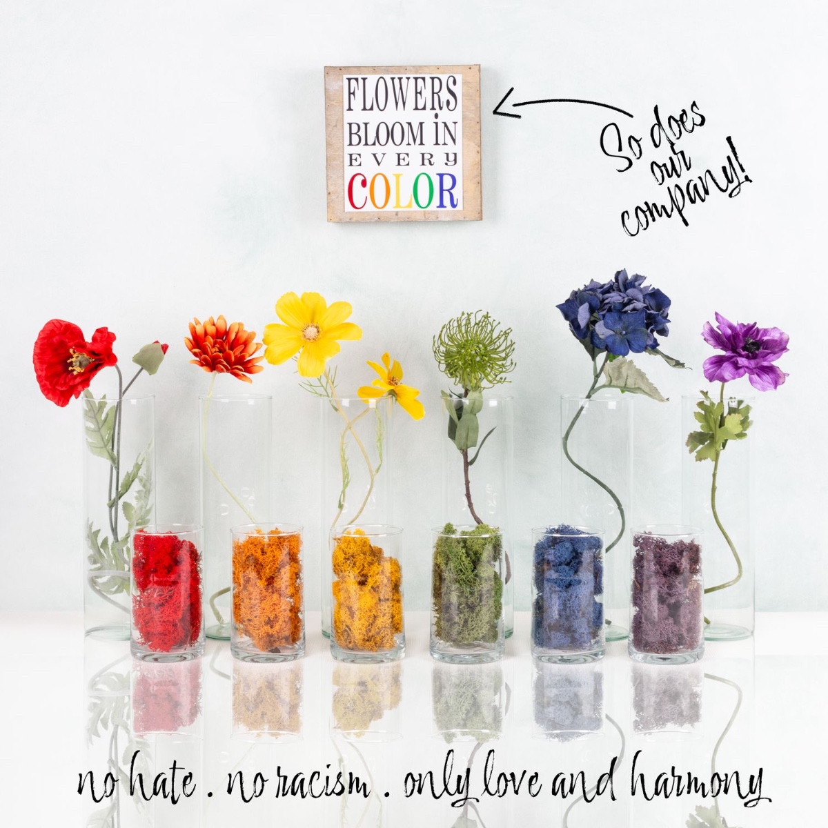 En los colores del arcoíris, ¡tan variados como nuestro equipo! Nuestro mundo es colorido, y eso no solo se refleja en nuestra colorida gama de productos, sino también en las personas que hay detrás de artplants. Para nosotros, la diversidad es algo natural, independientemente del origen, el amor o las creencias. Los colores vivos de las flores armonizan a la perfección con el cristal relleno de musgo en primer plano y demuestran que la belleza surge donde se encuentran los colores y las personas. ¡Compra el look!