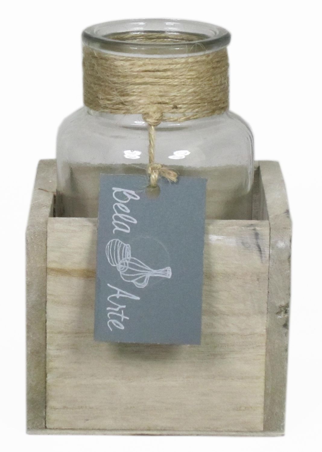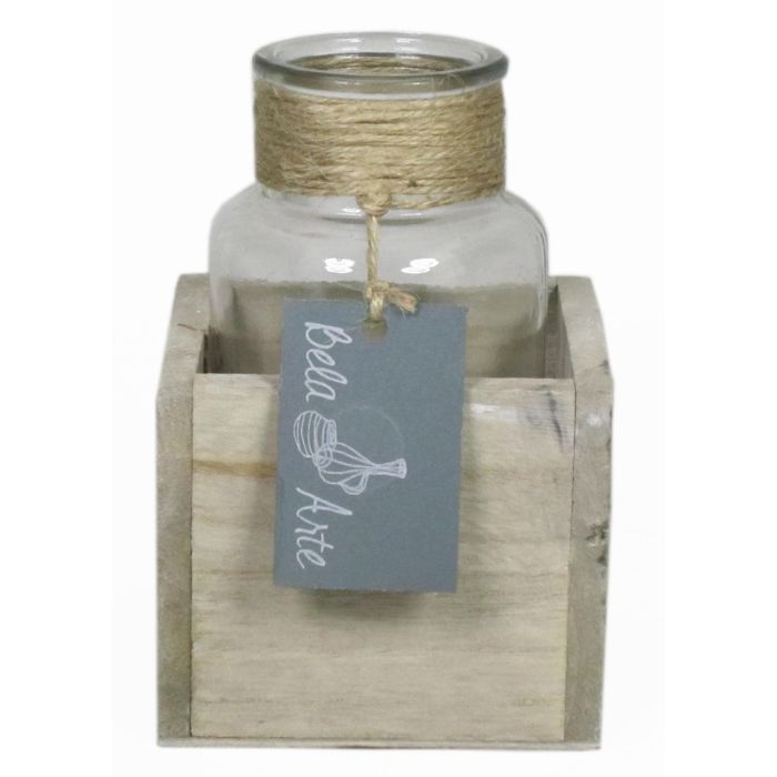 Frascos de cristal LORRIE en caja de madera, vidrio, transparente, 9x9x13cm