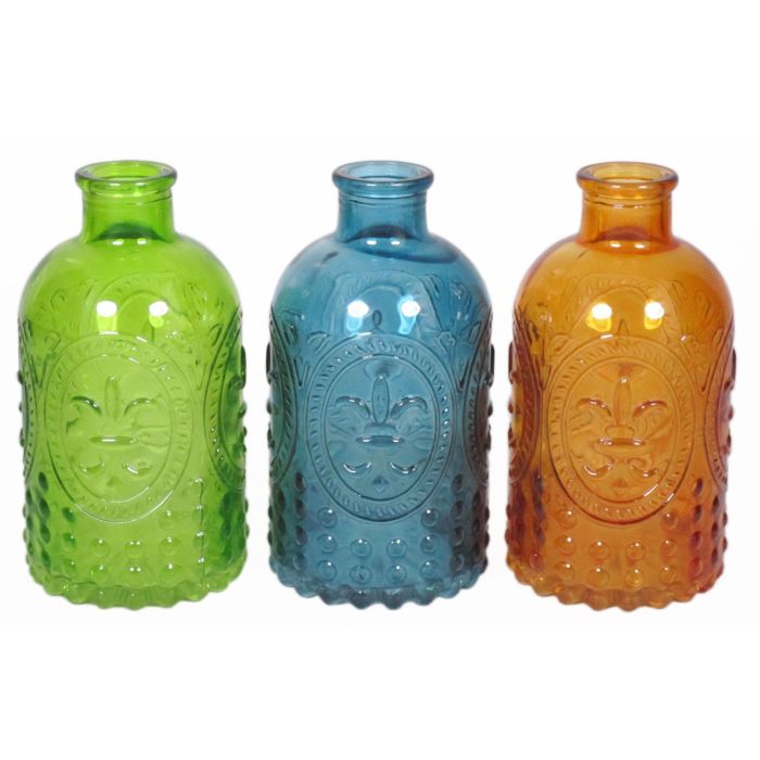 Frascos de vidrio decorativos URSULA con diseño, 3 vasos, de color, 12,5cm, Ø6,5cm