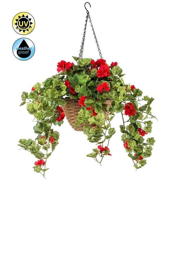 Geranio artificial en cesta CUVAST, crossdoor, rojo, 70 cm