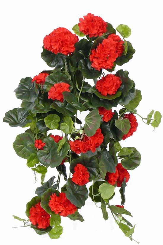 Geranio colgante artificial ANTON vara de fijación, rojo, 65cm, Ø5-8cm