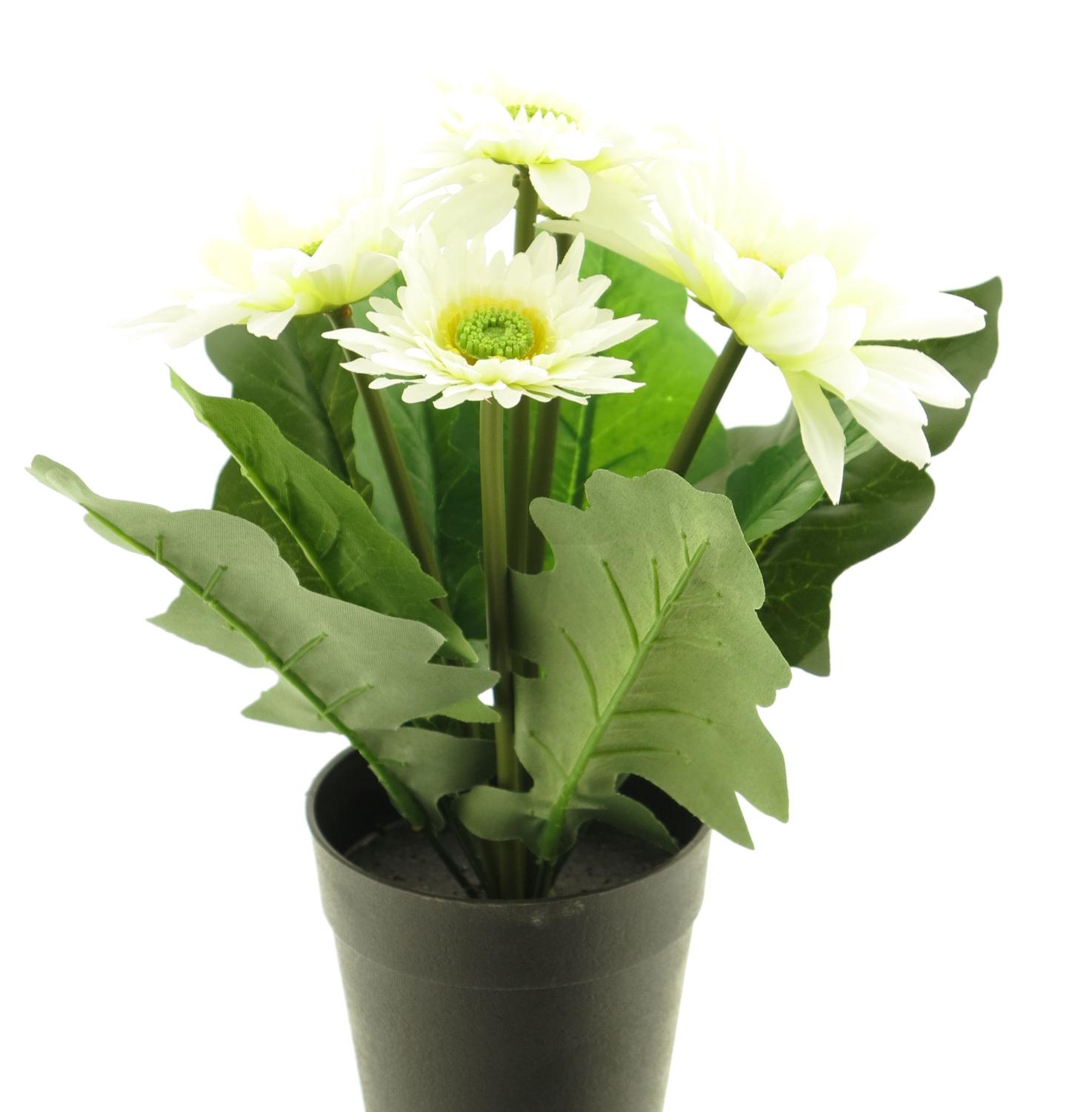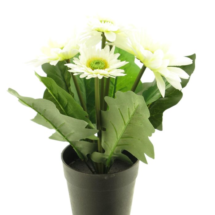 Gerbera artificial XIAOOU en maceta decorativa, crema, 25cm