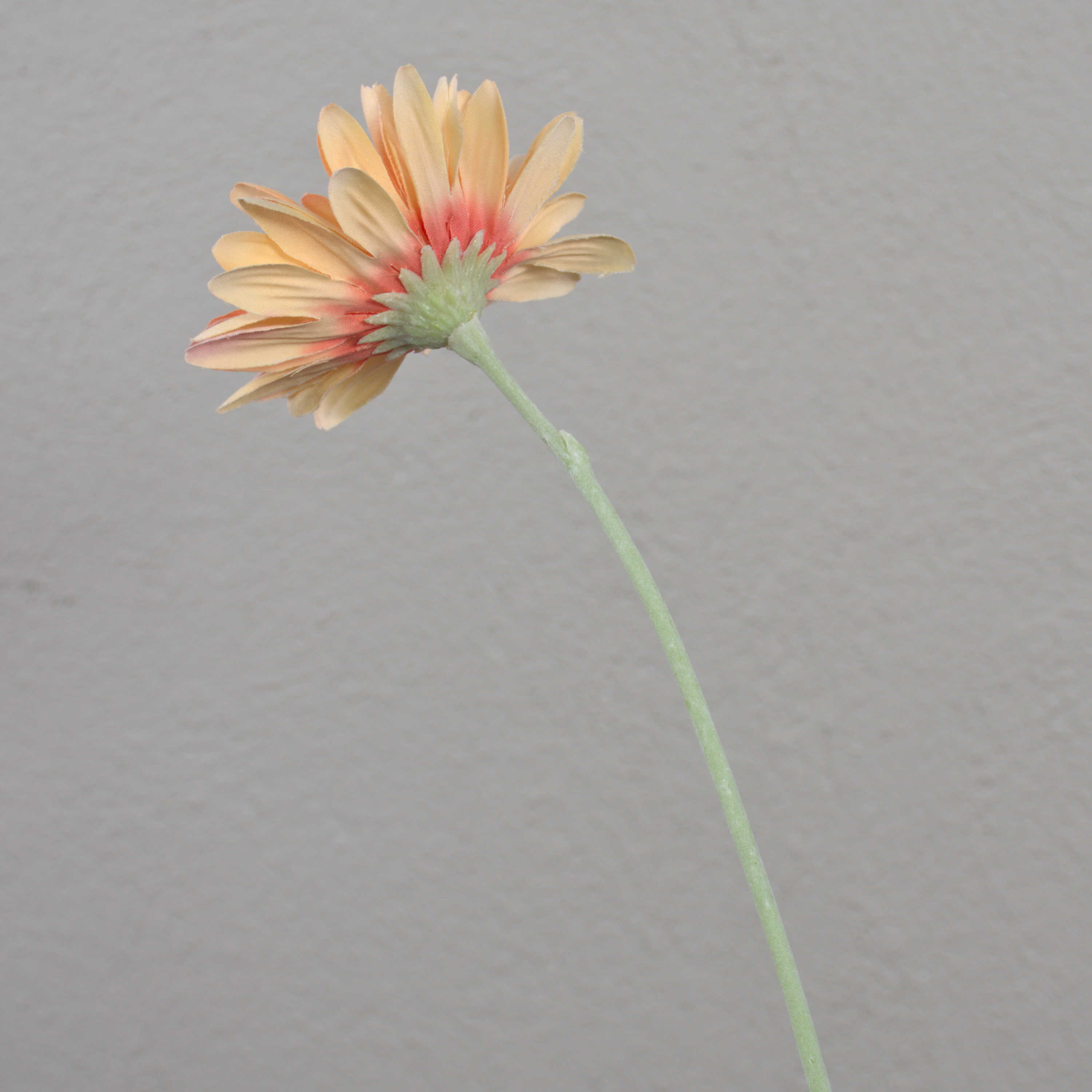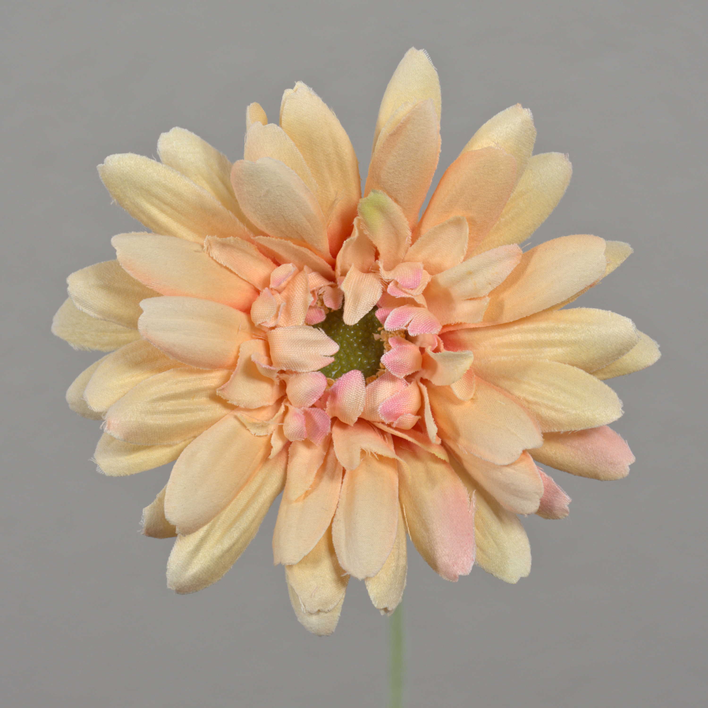 La flor artificial gerbera en color crema-rosa posee un aspecto real. Su longitud total es de aproximadamente 55 cm.