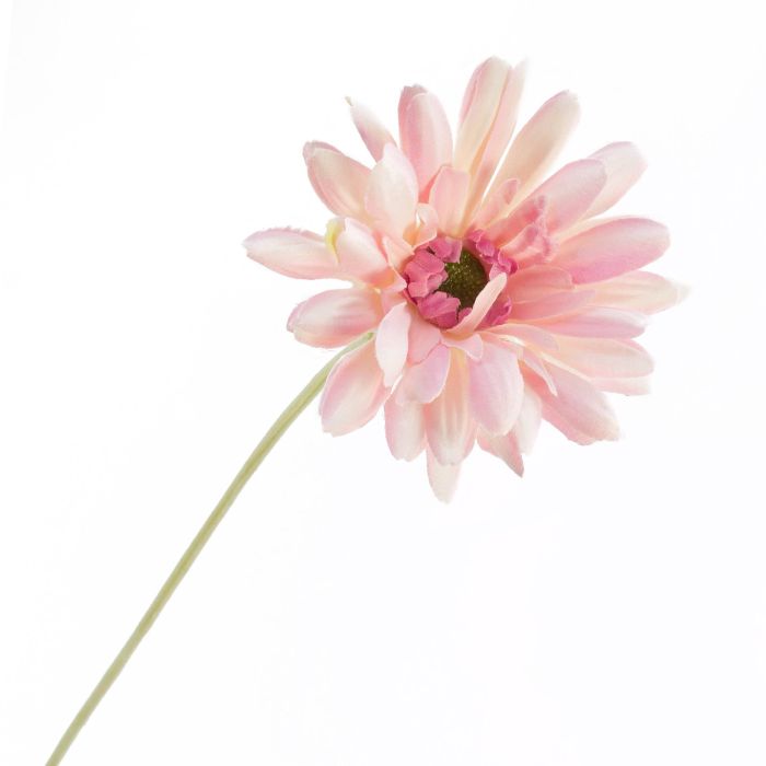 La flor artificial gerbera en color rosa posee un aspecto real. Su longitud total es de aproximadamente 55 cm.