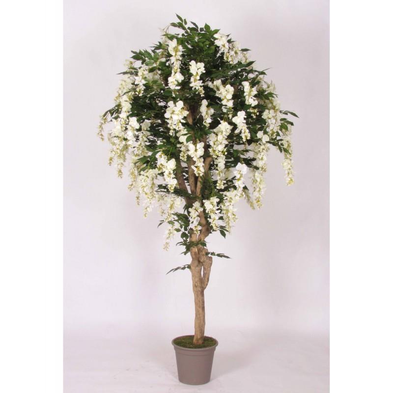 Glicinia falsa ERLINA, tronco real, con flores, blanco, 175 cm - Fabricado en Italia