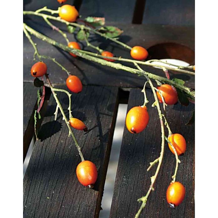 Guirnalda artificial de rosa mosqueta RAMIN con frutos de color: rojo-naranja. La enredadera falsa con una longitud total de aproximadamente 180 cm es ideal para espejos y mesas.
