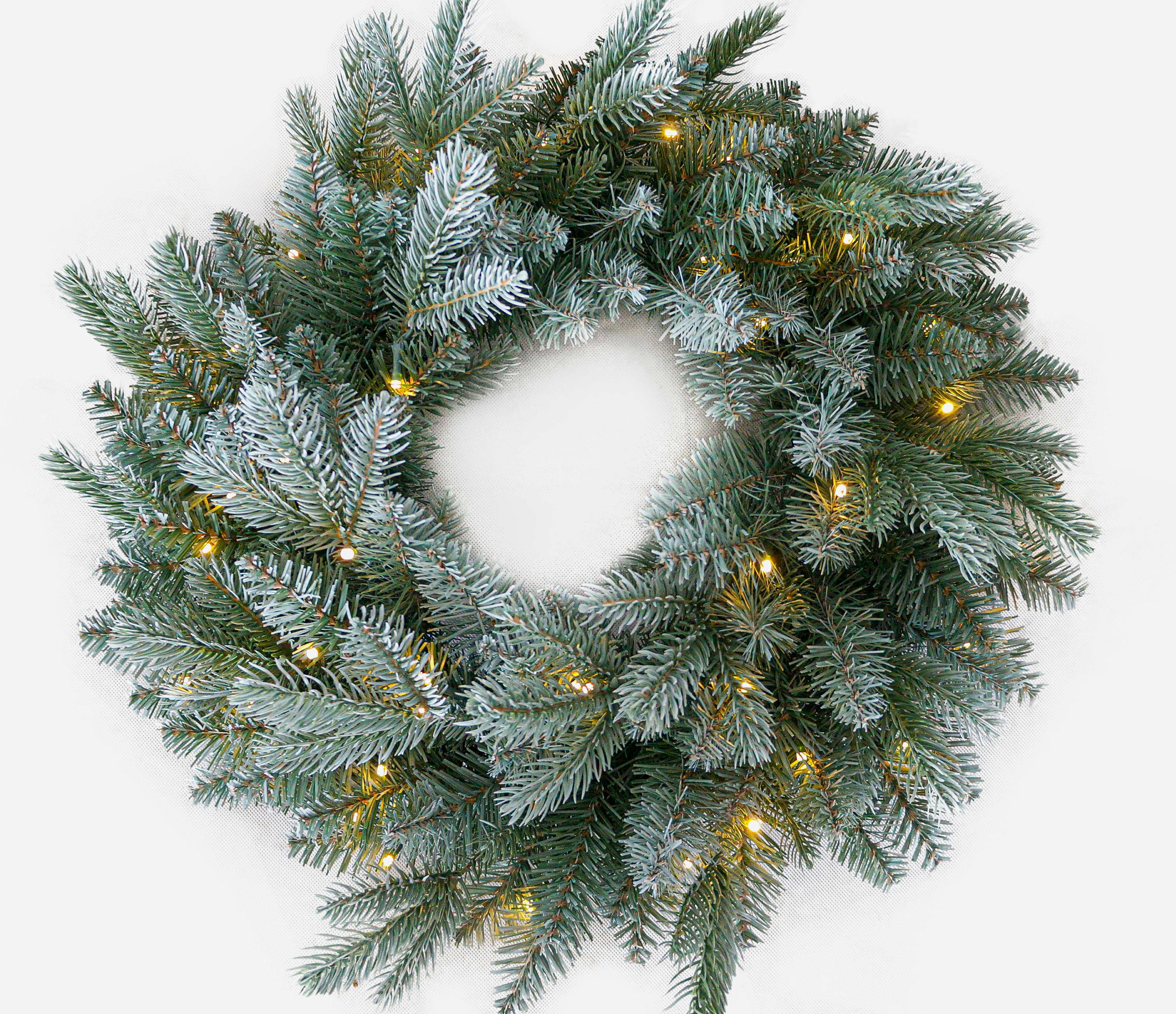 - Corona falsa con aspecto helado y muchos LEDs para su decoración individual